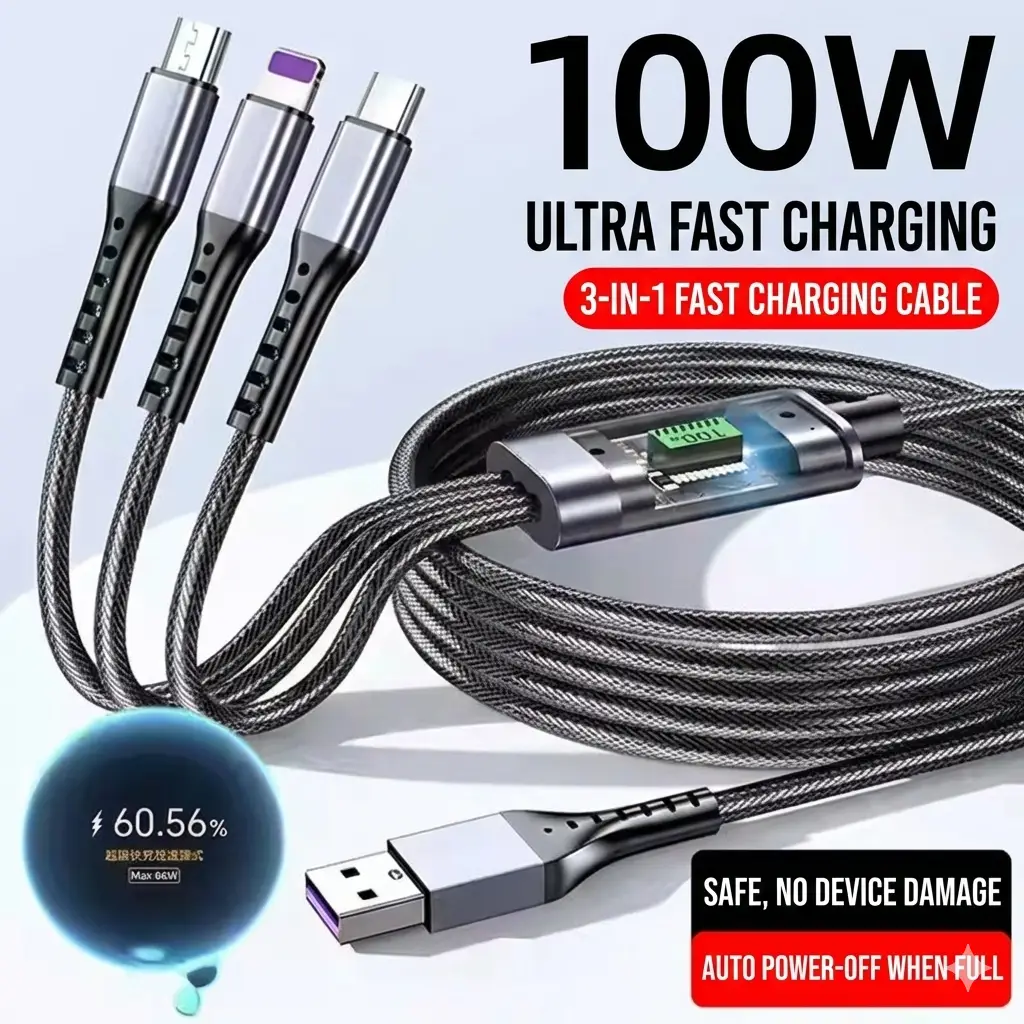Super fast charging 3-in-1 data cable universal charging cable